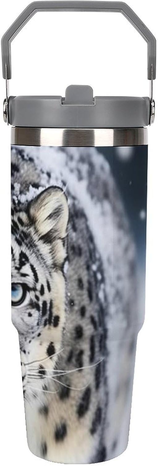 Our Blue Eyed Snow Leopard travel water bottle is made of food-grade stainless steel. The wide mouth design makes it easy to clean and add ice, and the powder-coated exterior is non-slip and durable, ensuring driving safety.Whether you prefer sipping or quenching your thirst, this personalized insulated mug has you covered. Featuring a splash-proof straw design, a sealing ring securely holds the reusable straw, and a drinking spout and full-coverage lid for enhanced leak-proof performance, this mug allows you to easily carry ice water to work, meetings, the gym, or on trips.You can give it to your friends and family as a birthday, Mother's Day, Father's Day, New Year's, Thanksgiving, and holiday gift. It's a thoughtful present.