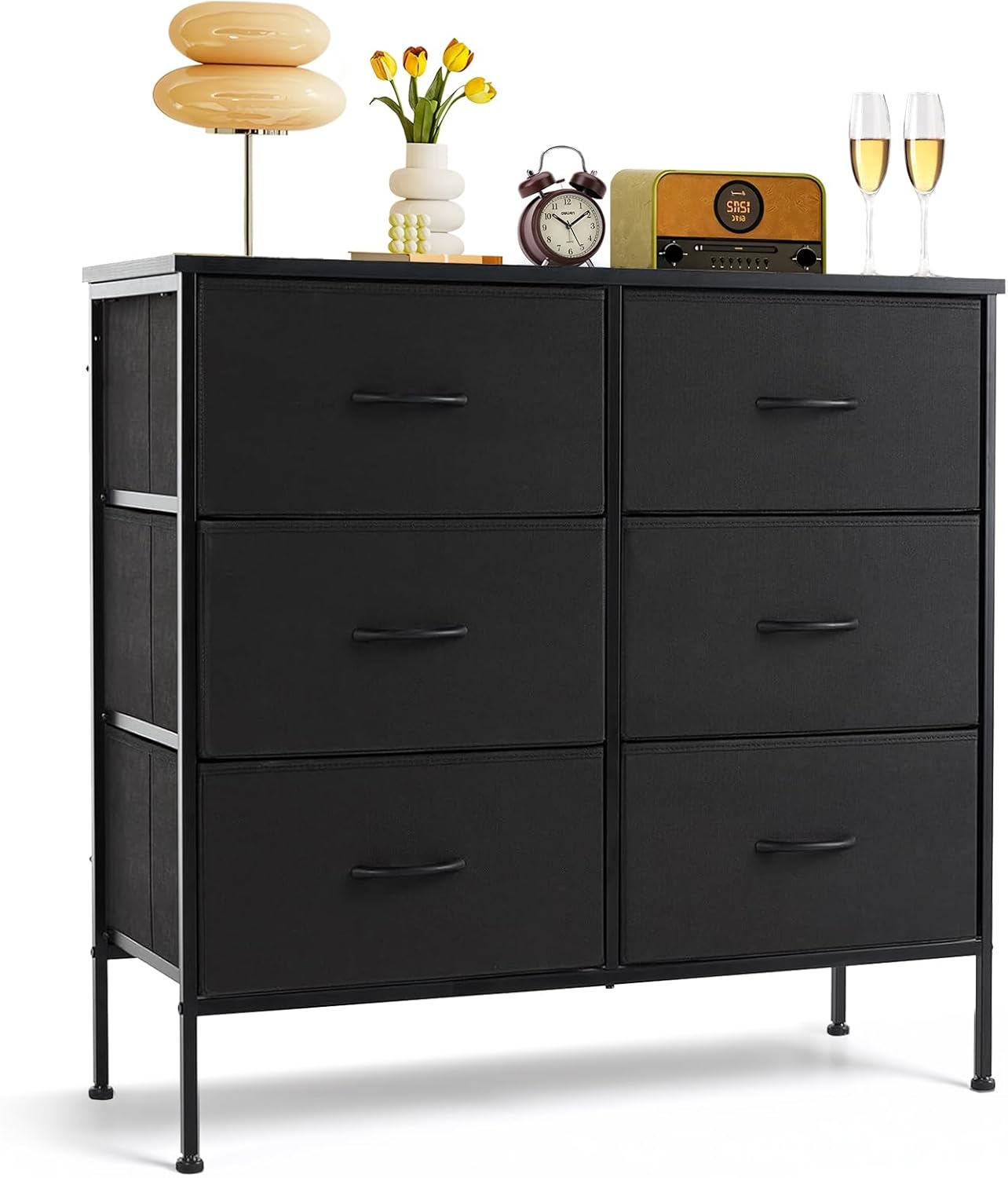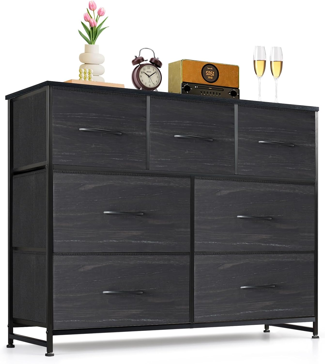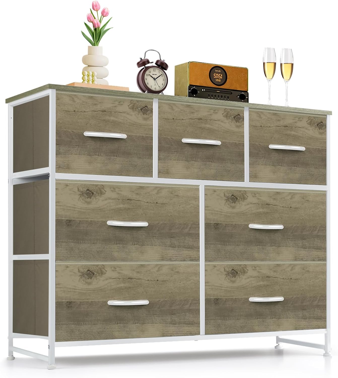 Designed with durability in mind, this fabric storage dresser is built with a sturdy steel frame, a scratch-resistant MDF wooden top, and breathable non-woven fabric drawers that are lightweight yet durable. The modern wood-and-fabric design complements a wide range of décor styles, including modern, minimalist, rustic, and farmhouse interiors. Soft-sided drawers are safe and protect delicate clothing, while the wooden top provides a stable surface for lamps, photos, plants, or electronics.