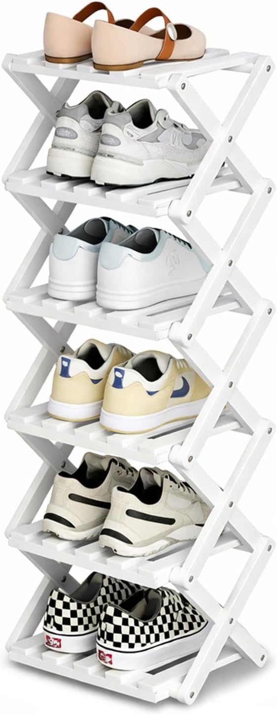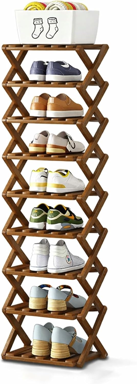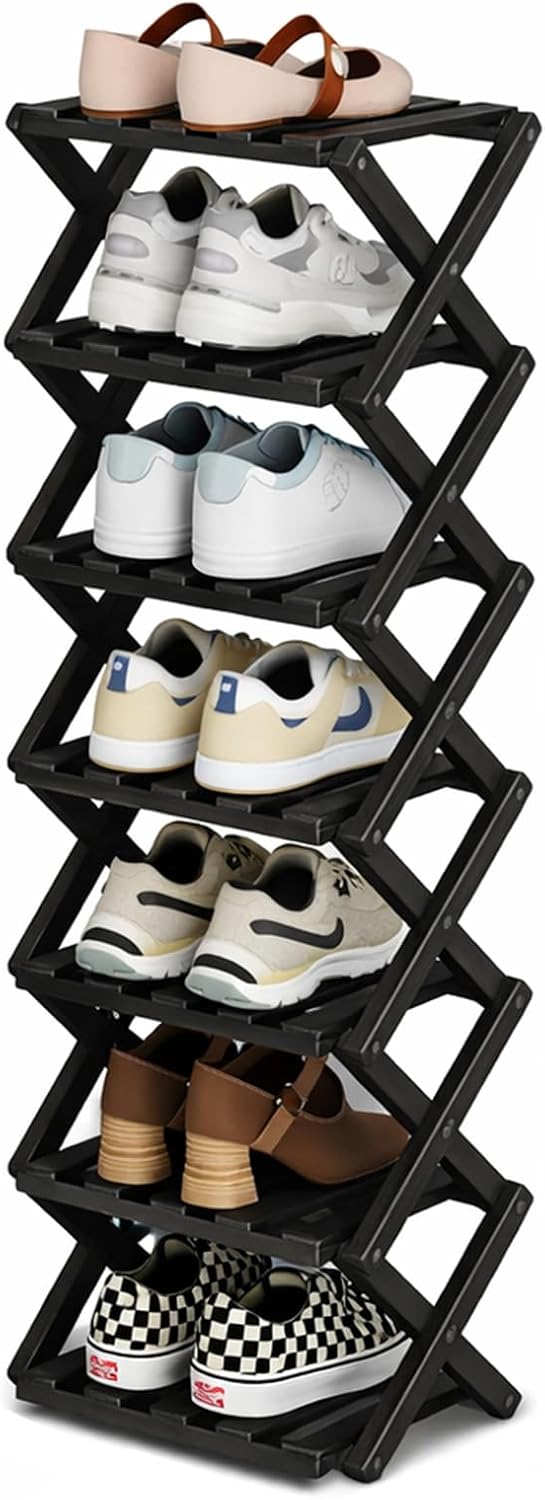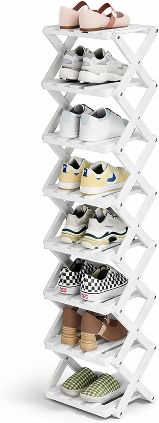 Transform your cluttered entryway or cramped apartment into an organized oasis with the Bamboo Foldable Narrow Shoe Rack—the smart storage solution that finally makes sense of small spaces. Crafted from premium aged bamboo with reinforced, thickened construction, this vertical organizer offers exceptional durability while maintaining an elegant, smooth finish that complements any decor. Say goodbye to frustrating DIY assembly: its innovative interlocking system lets you set it up in just one minute without any tools, and when you need to relocate or store it, the entire unit folds flat to a mere 12x11 inches. Available in 3, 6, or 9-tier configurations, it accommodates 12 to 60 pairs of shoes—from sneakers to high heels—with each sturdy shelf supporting up to 33 pounds. But don't let the name fool you; this versatile beauty is equally at home holding potted plants, books, or bedside accessories, adapting effortlessly to your changing needs. Whether tucked into a narrow hallway corner, standing tall in a dorm room, or brightening a balcony, its space-saving vertical design maximizes every square inch while keeping your belongings beautifully displayed and easily accessible. Stop tripping over shoes and start enjoying a tidier, more spacious home—order your Bamboo Foldable Narrow Shoe Rack today and experience the perfect blend of form, function, and effortless organization.Specification:Name: Bamboo Storage Rack ShoesMaterial:WoodSize:As ShowColor: Nature/Brown/White/BlackPackage Includes:1 Pc * Bamboo Storage Rack Shoes