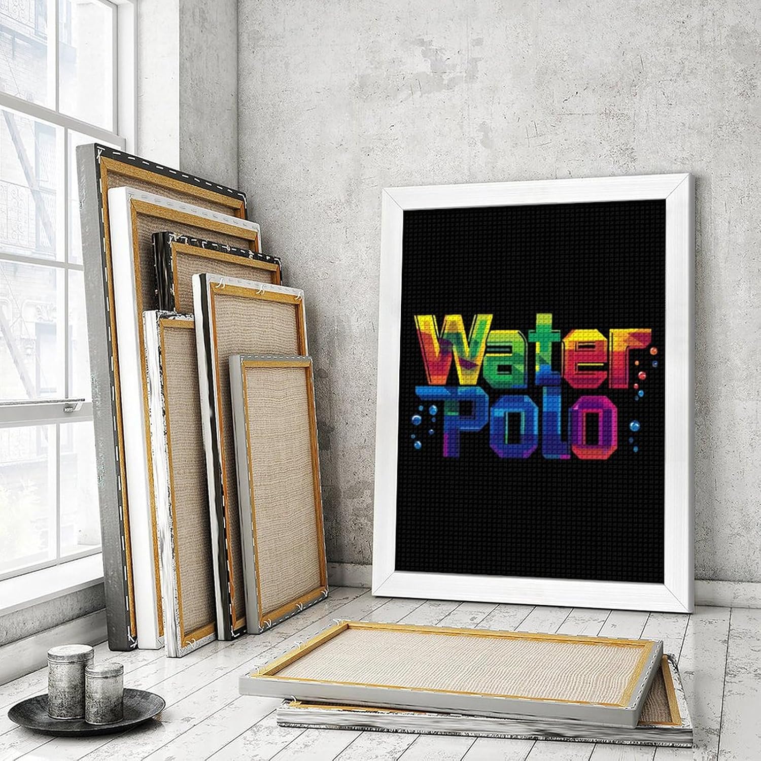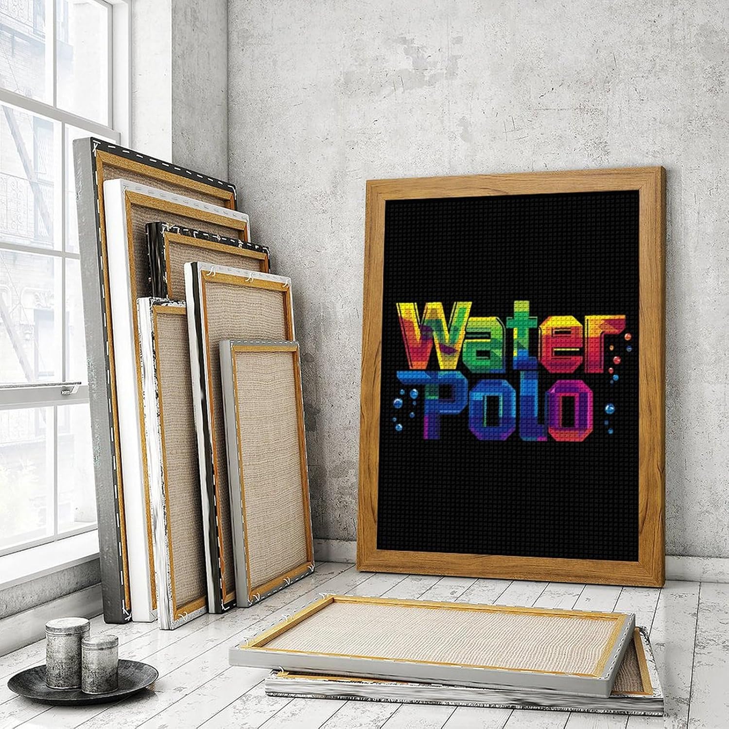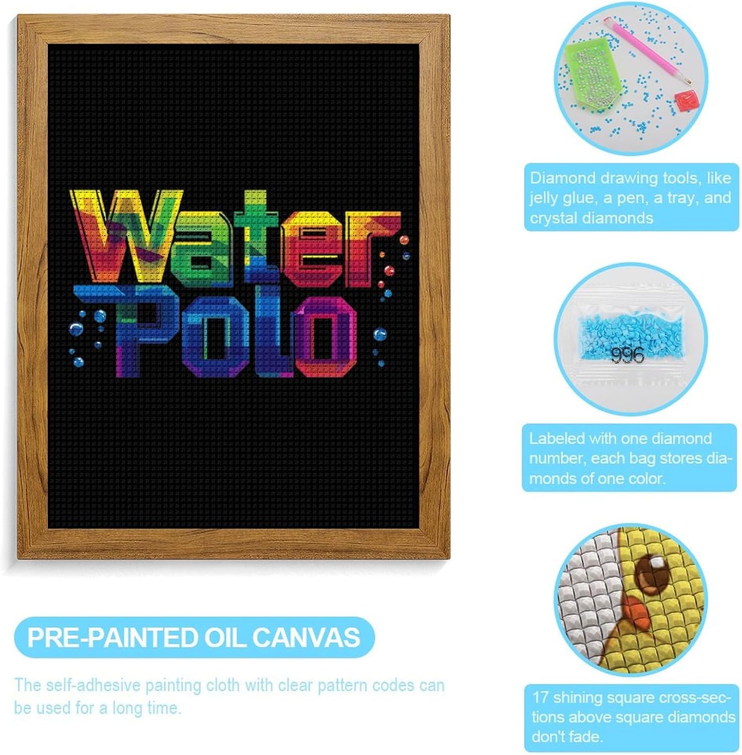 Colorful Water Polo Diamond 5D Painting Kits with Frame DIY Full Round Drill Gem Art Crafts for Home Wall Decor 16 X 20in Blackwood 40 * 50cm