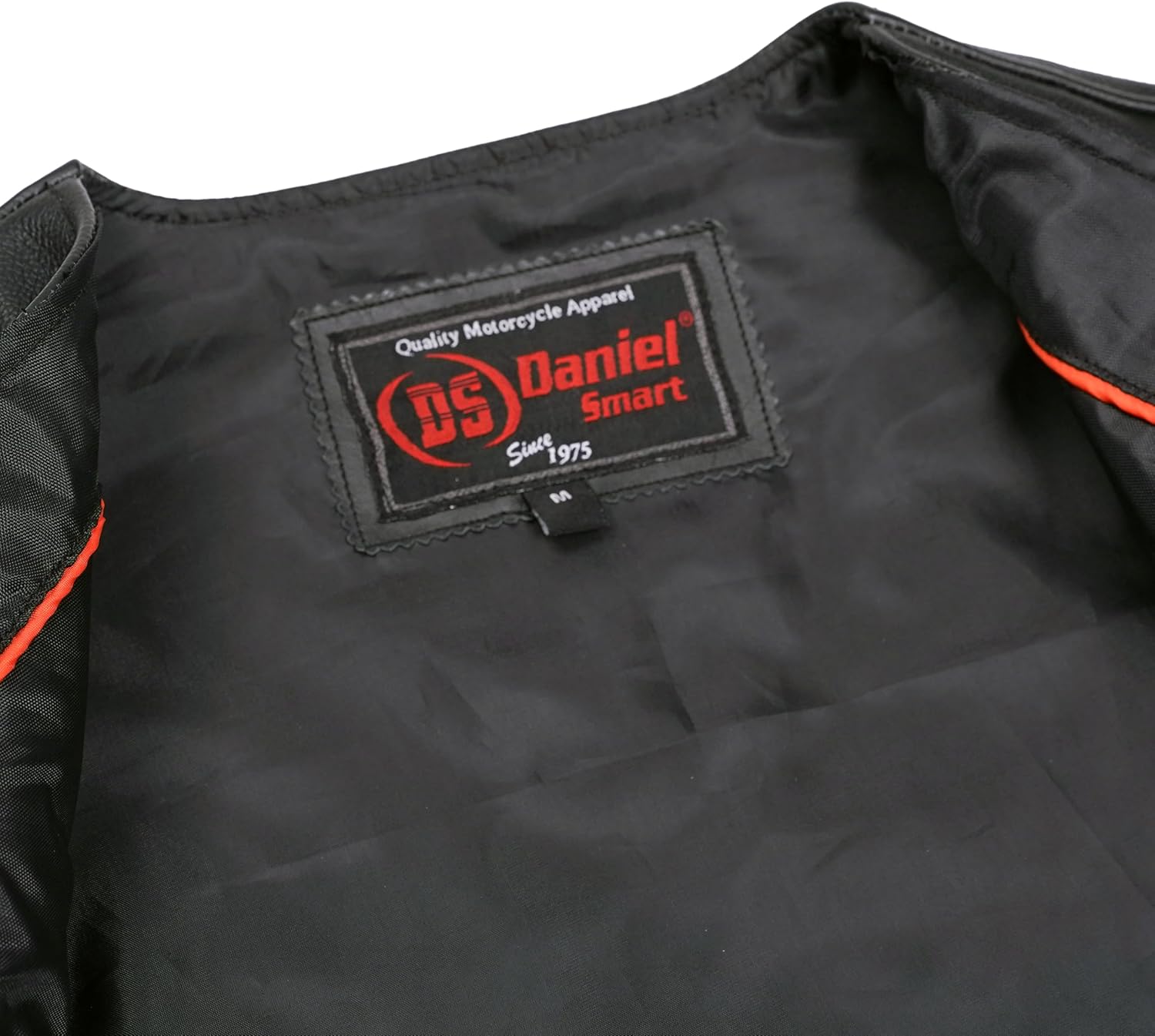 Premium Quality leather: Daniel Smart Women Leather Vest is made with Milled Promo Cowhide and inner satin liner making it an attractive biker style for ladies in Women Motorcycle Vest. The Leather Vest has an Inner satin liner and Reinforced Shoulder Support for Superior Armory Concealment making it durable and Attractive. Attractive and Modern Design: If you're looking for a high-quality leather motorcycle vest at a reasonable price, Daniel Smart has you covered with an Attractive Black Leather Vest designed with Side laces for size adjustment to get an Attractive and Modern look. Multipurpose Leather Vest: The Ladies Leather Vest has a single panel back, two inside insides made of heavy-duty fabric with built-in s and snap closure, two outside zippered pockets, an inside cell phone pocket, and a Classic Antique black 4 snap front. Best for You: Daniel Smart Women Leather Vest is available in sizes ranging from XS to 5XL to guarantee you receive the finest fit. Daniel Smart Women Leather Vest is a stylish and trendy look that is ideal for biker ladies who want to travel the world. Please consult the sizing chart image for further information. Ride with Confidence: Daniel Smart's ladies biker vest isn't just about style and features it's about boosting confidence in every rider. Our biking gears are carefully designed to enhance your riding experience, providing not just comfort and functionality, but a sense of confidence on the road.