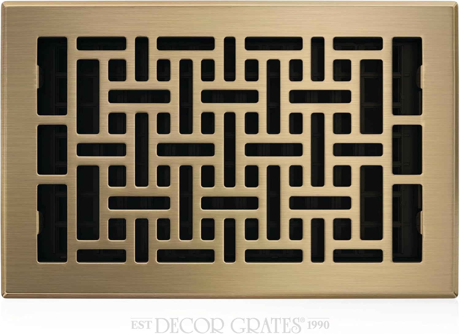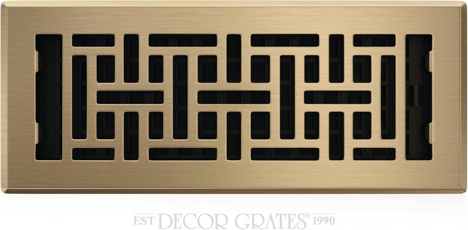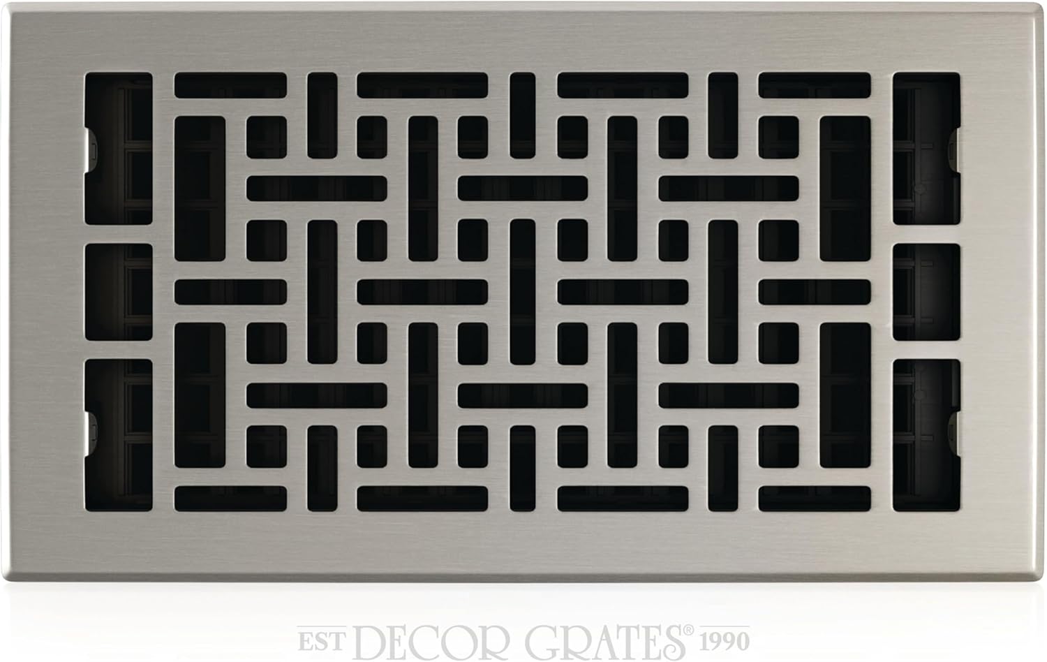 Decor Grates oriental plated floor registers are built with the finest materials. Each and every register goes through a quality assurance process to ensure your satisfaction. Our classic designs will enhance any rooms decor and give you years of trouble free operation. Our family owned company takes great pride in making sure you are totally satisfied with your purchase.Useful Tip: Because of increased floor cleaning during this pandemic, we recommend removing your steel floor registers before cleaning your floor. The floor registers can simply be cleaned using a dry cloth. Frequent exposure to water and cleaning detergents will accelerate the rusting process