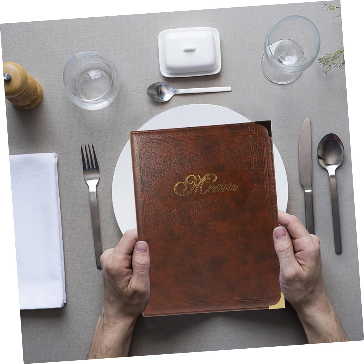 Package List 2 x Menu Covers Characteristics -Inner Page Size: 29.7x21cm, 7-sheets -Product Info:Order menu book - Color: Assorted Color -Material:PU - Size: 33.50X25.50X2.50cm/13.17X10.02X0.98in -Features the simple inner page, very easy to replace the contents, which is practical and convenient menu holders. -This Menu Folder is suitable for the home, bar and restaurant use restaurant menu display book. -The Menu Folder is made of PU material, not easy to break off, perfect menu holder, the inner page will not shake and fall. -The match the simple and casual dining environment restaurant menu holder covers. -Selected excellent material for the PU cover, offering you a comfortable touch.Goods Informationmeal menu holder Such a special and unique item is designed for hotel, restaurant, bar, hotel, etc.menu holders Humanized round corner design, round corner, feel comfortable, hands safe.meal menu folder The color and appearance make them look and simple.hotel menu book This practical Menu Holder is manufactured for holding menu, meal menu tag, etc