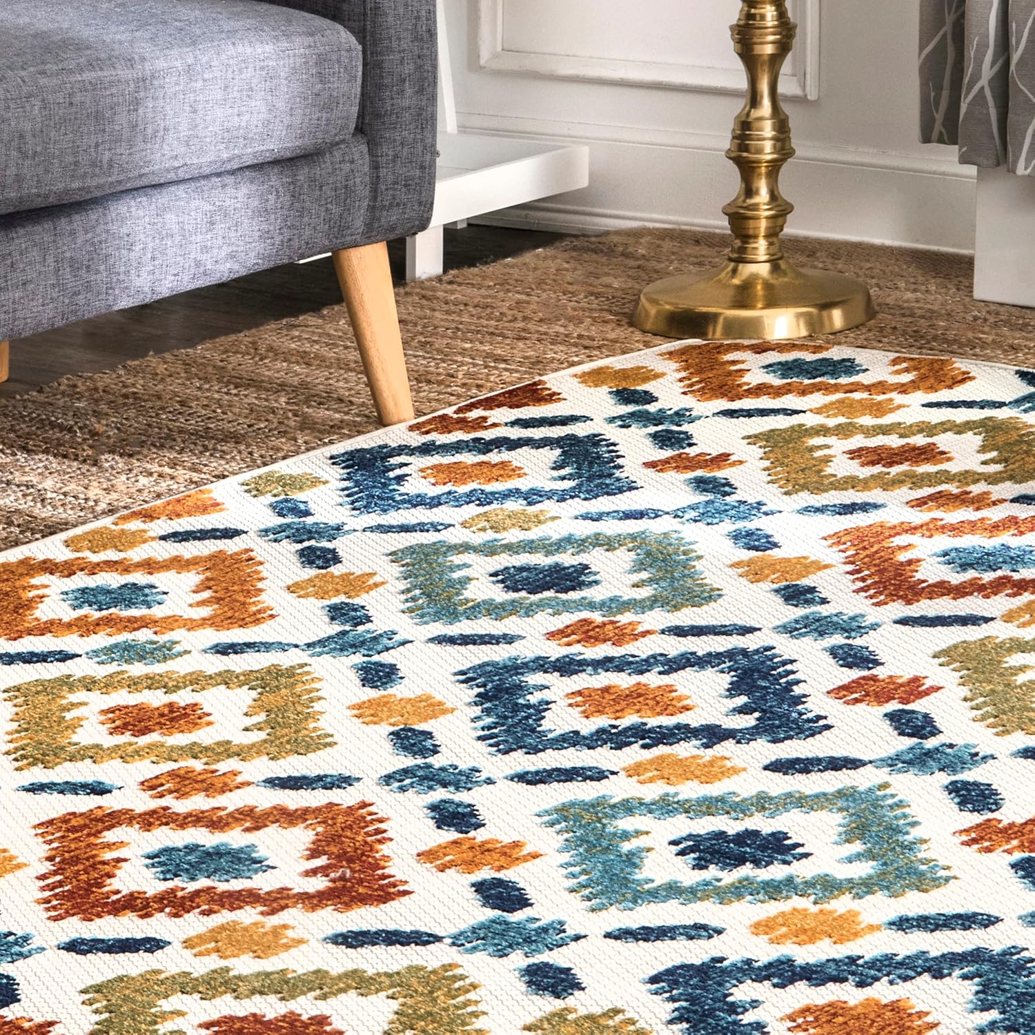 Enjoy bright color and whimsy in your space with this multicolor area rug from nuLOOM. This rug features a diamond-motif geometric pattern with various bright colors. This durable, machine-made polypropylene rug is perfect for the busiest areas of your home.