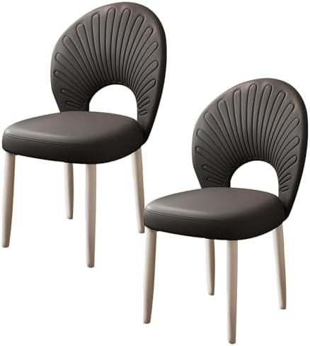 Stylish Gray & Black Leather Dining Chairs, Upholstered Armless Accent Chairs with High Backrest, Perfect for Kitchen, Cafe, Office & Dressing Table (Set of 2)