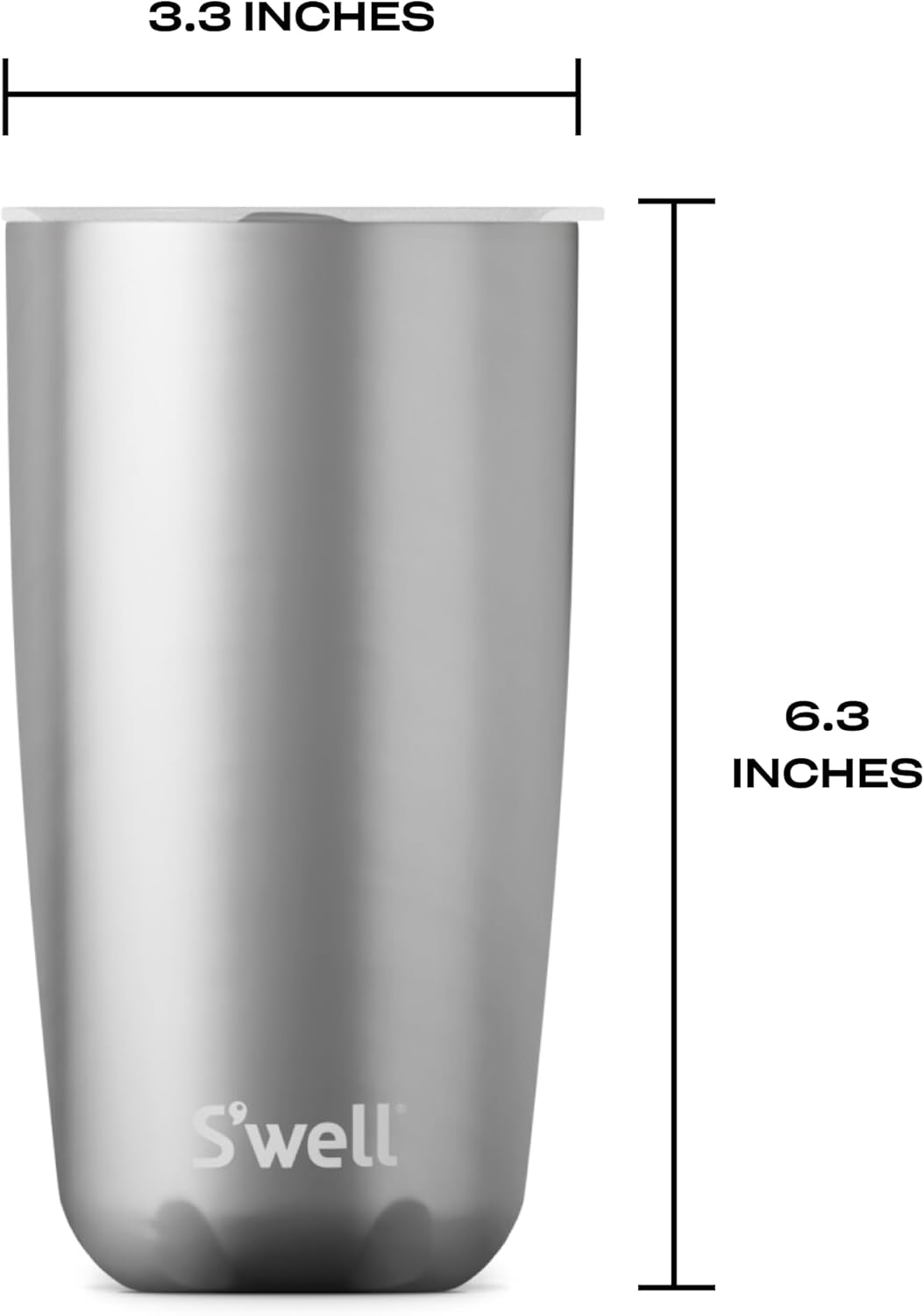 The S'well Tumbler is a multitasking master whether you're at home or on the go. Ideal for hot or cold coffee, tea, fountain drinks, smoothies, and more. Made from 18/8 premium grade stainless steel, they feature Therma-S’well Technology with triple-layered, vacuum-insulated construction designed to keep beverages colder or hotter for longer. BPA/BPS-free with zero condensation. Includes Slide-Open Lid, effortlessly slide open for sipping and closed for splash-proof carrying.