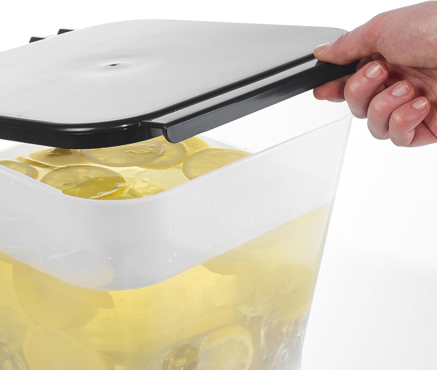 The Winco PBD-3SK square 3 gallon beverage dispenser with base features a space saving design with a compact footprint that saves valuable counter space ideal for use in restaurants, hotels and catering. This beverage server is made from specially designed stain-resistant plastic making it the perfect choice for serving iced tea, juice and more. The graduated beverage chamber and low set faucet ensures beverages flow smoothly until the chamber is empty. This commercial beverage server features a drip-free faucet and drip tray to ensure beverage station stay clean. 100% BPA free. NSF listed.