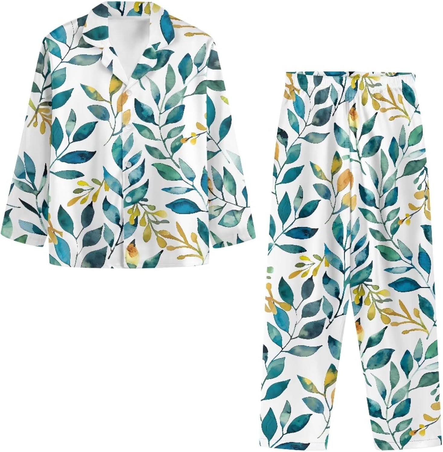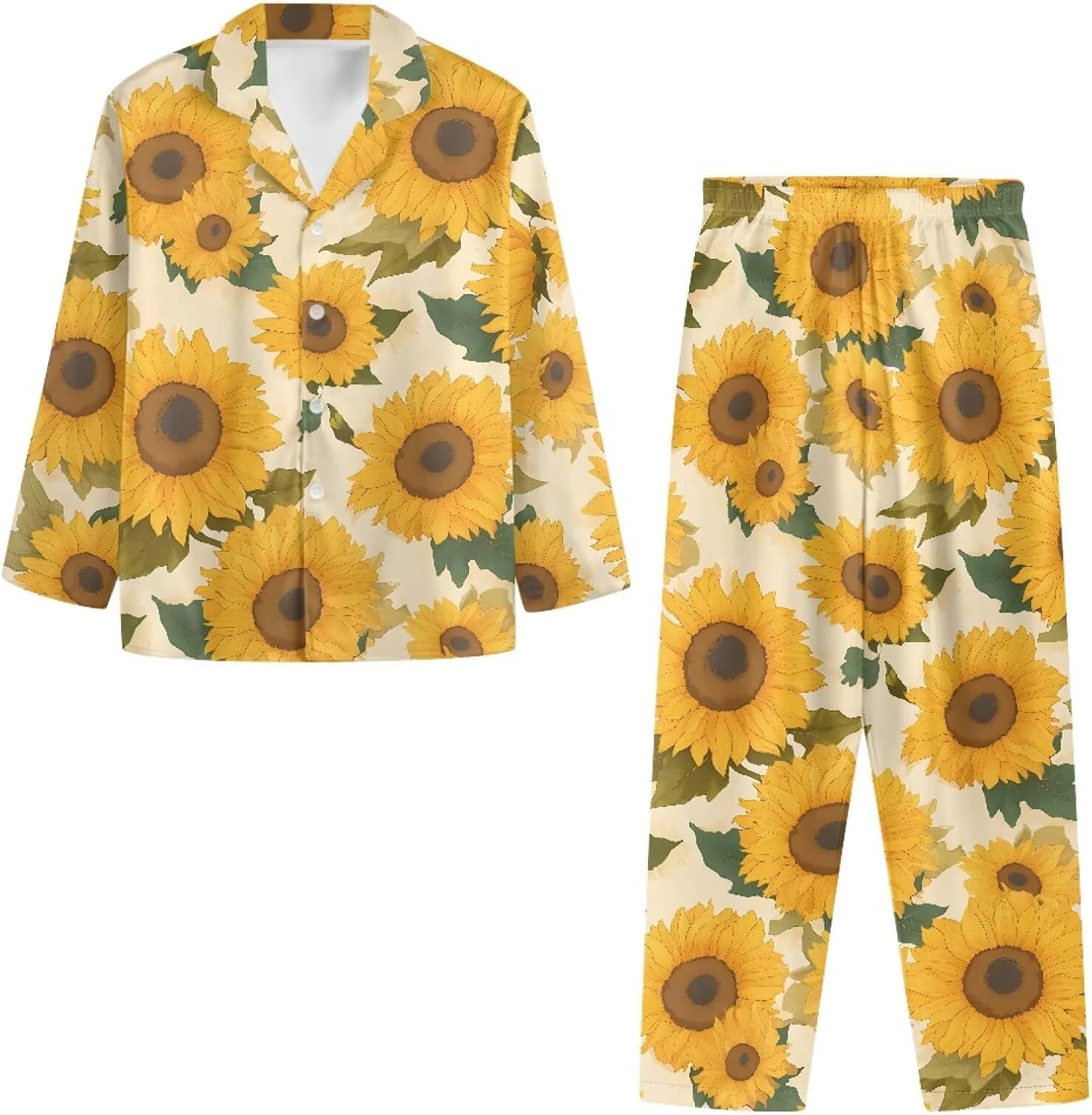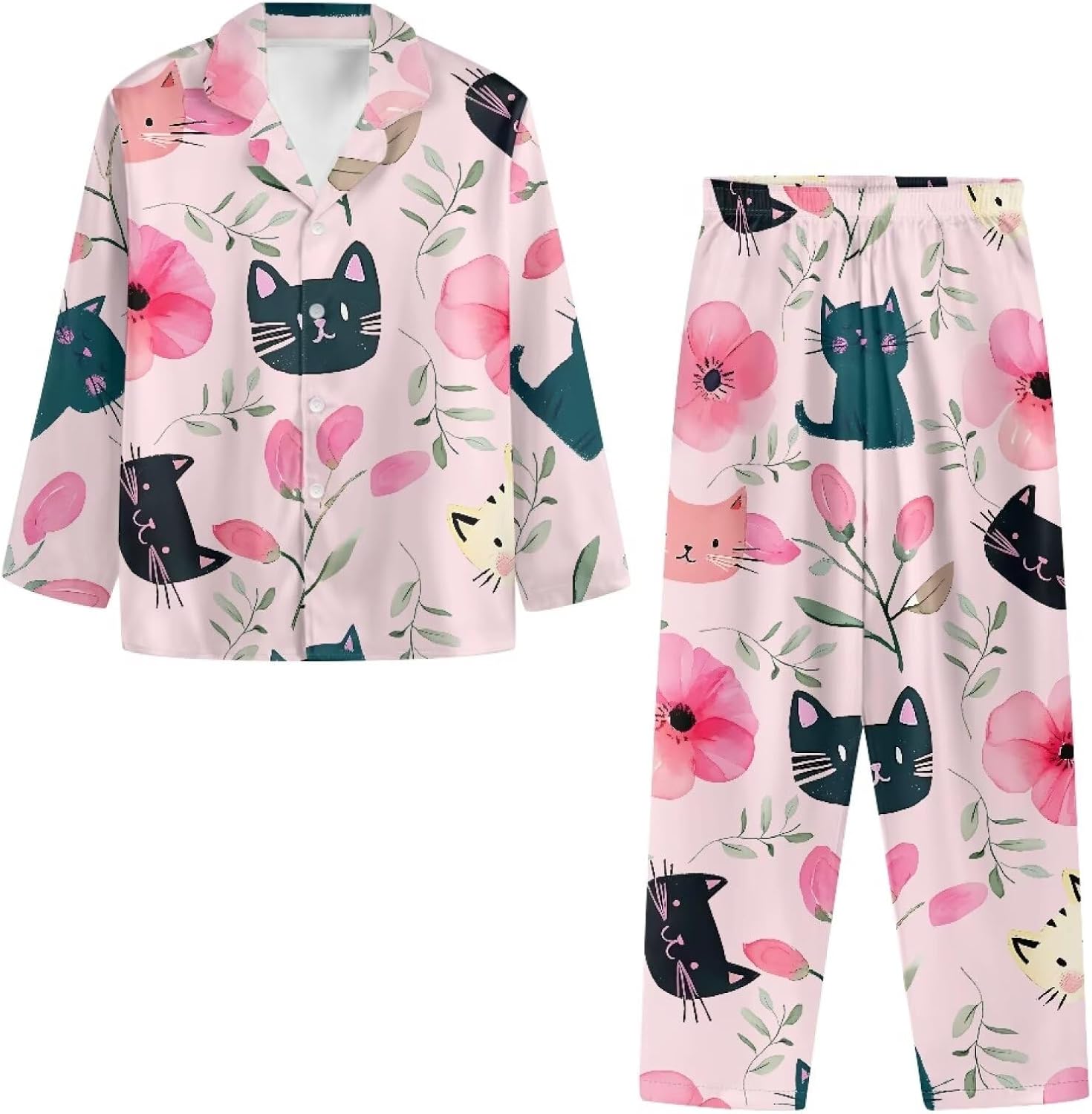 Oamsistay Women's Fashion Pajama Sets Short Sleeve Shirt S-3XL Floral Pajamas Set Soft PJ Loungewear Sleepwear Casual Printed Loungewear Combining casualness with practicality, this set is the ideal choice for warm evenings, lazy weekends, or relaxing days. With breathable fabrics, a chic aesthetic, and thoughtful details, it redefines casual loungewear. Sizes: Bust*Waist*Hips*Length S: 35'' * 32.6'' * 37'' * 43.9'' M: 37.9'' * 35.6'' * 40'' * 44.3'' L: 40.9'' * 38.6'' * 42.9'' * 44.9'' X-L: 44'' * 41.6'' * 47'' * 45.3'' XX-L: 45'' * 42.6'' * 47.9'' * 45.8'' XXX-L: 49'' * 46.6'' * 52'' * 46.2'' XXXX-L: 52.9'' * 50.6'' * 55.9'' * 46.8'' Packags: Tops*1 & Long Pants *1 Features: Multi Occasions to Wear: Sleeping, Leisure, Home Wear, Dating, Street, Daily Wear, Walking and Walking the Dog and Vacation etc. Fashion Printed: The prints on the pajamas set are mainly daily themes such as florals, butterflies, hummingbirds, flowers, leaves, dragonflies, cats, dogs, etc.